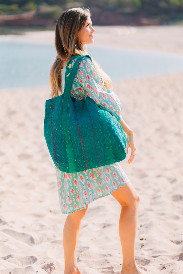 Bolso de algodón con bordado étnico kantha.