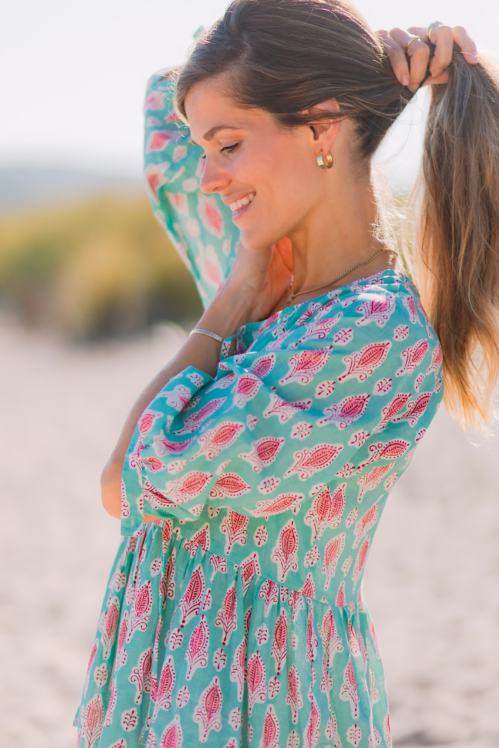Estampado block-print hecho a mano sobre tejido de algodón 100%.
